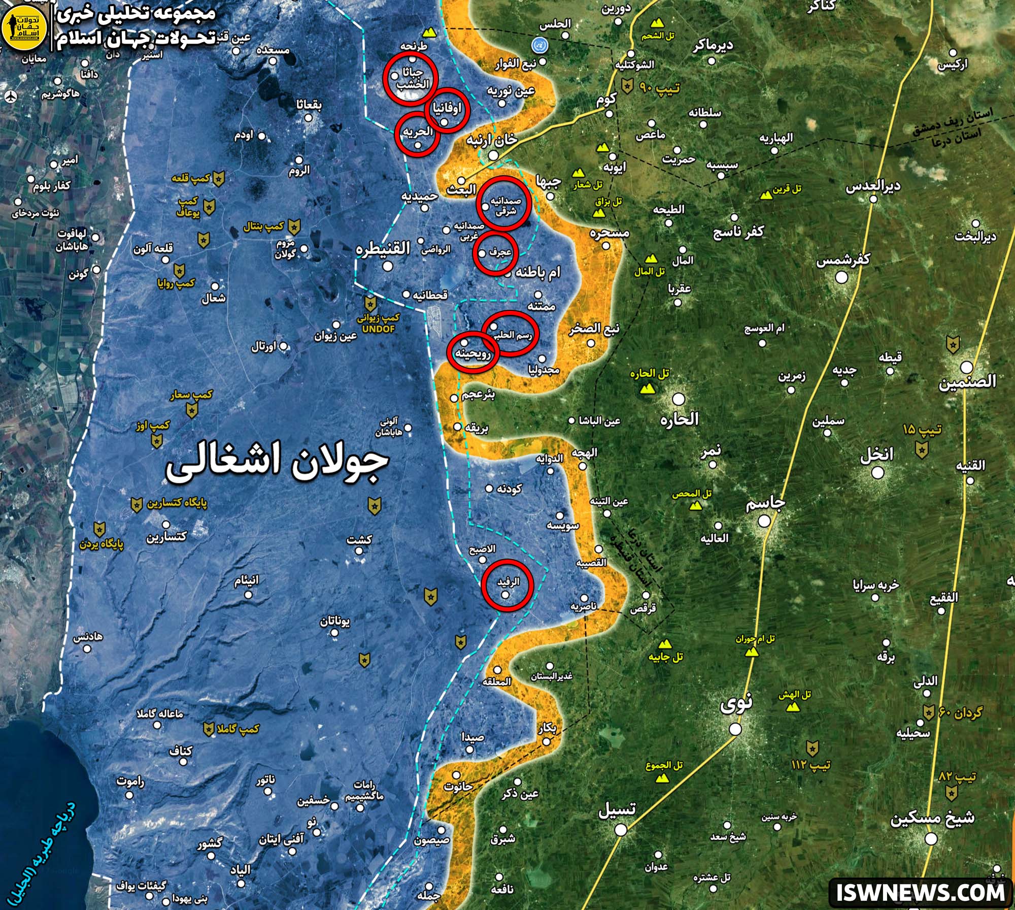 نظامیان اسرائیلی طی روزهای اخیر، اقدامات متعددی در استان قنیطره در جنوب سوریه شامل گشتزنی و برپایی پست ایست و بازرسی نمودند که برخی از این اقدامات با اعتراض شدید ساکنان استان قنیطره همراه بود.