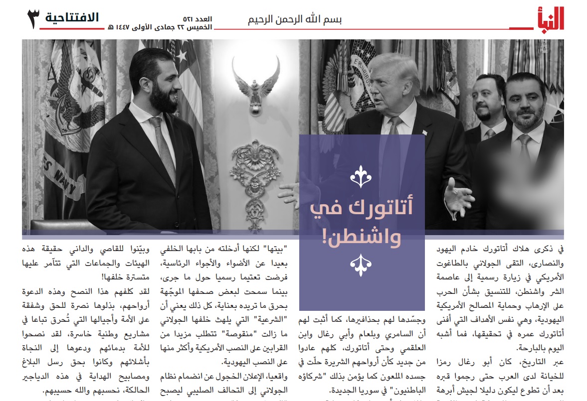 به گزارش پایگاه تحلیلی – خبری «تحولات جهان اسلام» داعش در سرمقاله شماره اخیر هفته نامه النبأ سفر اخیر الجولانی به واشنگتن را تکرار همان «نمایش خیانت» می‌دانند؛ سفری که آن را پیوندی مستقیم میان او و «پایتخت شر» توصیف می‌کنند. در این روایت، جولانی نه یک بازیگر سیاسی که چهره‌ای بازگشته از تاریخ خیانت‌هاست؛ امتداد همۀ کسانی که در ذهن داعش به گذشته تاریک آن‌ها تعلق دارند.