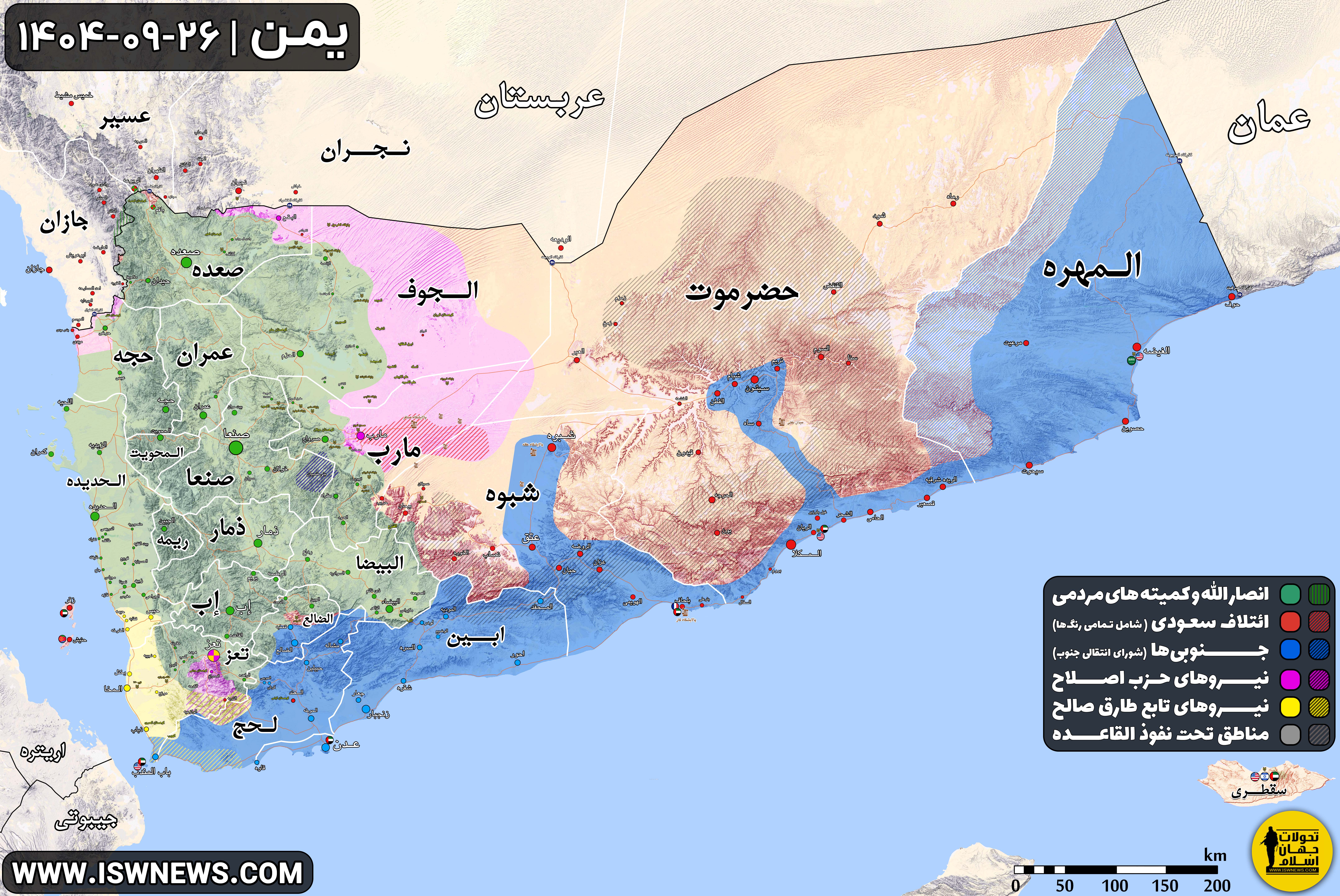 آخرین اخبار از جبهه شرق و جنوب یمن، ۲۶ آذر ۱۴۰۴ + نقشه میدانی