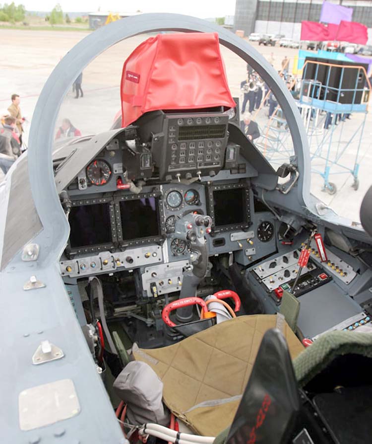 سامانههای ناوبری ماهوارهای (GLONASS و GPS)، ارتباطات امن، و هدایت تسلیحات از جمله تجهیزات آویونیک این جنگنده هستند. در برخی نسخهها، سامانه هدفگیری اپتیکی (IRST) نیز نصب شده که با استفاده از حسگرهای فروسرخ، اهداف را بدون انتشار امواج راداری شناسایی میکند. این ویژگی در نبردهای پنهانکارانه و مقابله با جنگ الکترونیک بسیار مؤثر است.