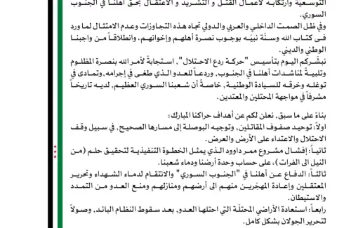 گروهی با عنوان حرکه ردع الاحتلال (جنبش بازدارندگی از اشغال) با انتشار بیانیهای در سوریه اعلام موجودیت کرد. این گروه محور اصلی فعالیت خود را مقابله با اشغالگری رژیم صهیونیستی در جنوب سوریه عنوان کرده است. در پی این اعلام، شعارهایی منتسب به این جنبش بر دیوارهای مناطق مختلف دمشق و حومه آن مشاهده شد.